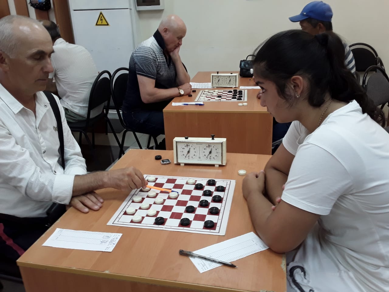 В Шахматной школе Пятигорска закончился чемпионат Кавказских минеральных вод по русским шашкам среди мужчин и женщин. 27 участников собрал чемпионат. Это был турнир, открытый для всех желающих, которых оказалось достаточно. Это, кроме представителей Кавминвод, спортсмены из Невинномысска, Кочубеевского района, и даже из Черкесска, Армавира, Грозного. На равных с взрослыми, опытными турнирными бойцами, сражались пятигорские школьники – воспитанники студии «Шашки» Дворца детского творчества: Лиза Шишкина, Анжела Геворкян, Боря Геворкян и Милан Стёпин. Мальчики не смогли составить конкуренцию взрослым. А девочки отличились: Лиза Шишкина стала чемпионкой Кавминвод среди взрослых, а Анжела Геворкян заняла третье место.